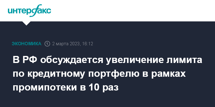 В РФ обсуждается увеличение лимита по кредитному портфелю в рамках промипотеки в 10 раз