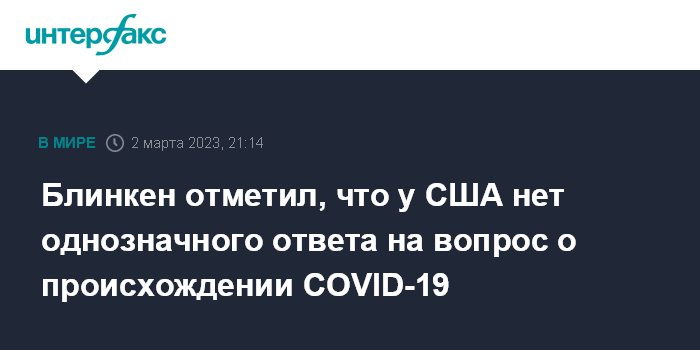 Блинкен отметил, что у США нет однозначного ответа на вопрос о происхождении COVID-19