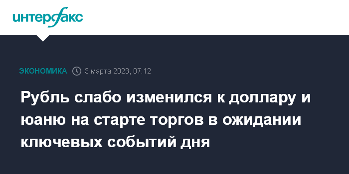 Москва. 3 марта. INTERFAX.RU - Доллар США и юань не проявляют яркой динамики на Московской бирже на старте торгов в пятницу, рубль демонстрирует незначительные колебания в ожидании ключевых событий дня.