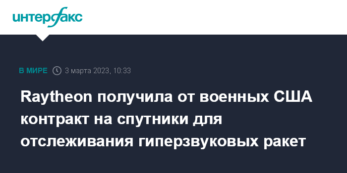 Raytheon получила от военных США контракт на спутники для отслеживания гиперзвуковых ракет