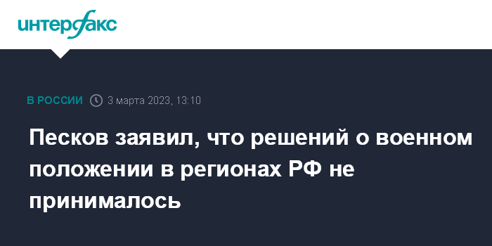 Песков заявил, что решений о военном положении в регионах РФ не принималось