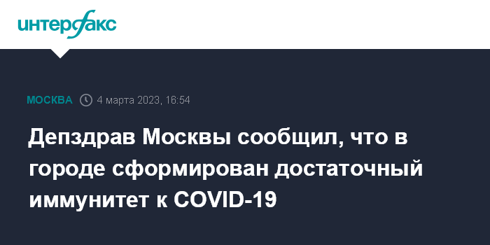 Депздрав Москвы сообщил, что в городе сформирован достаточный иммунитет к COVID-19