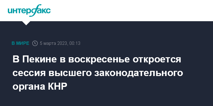 Москва. 5 марта. INTERFAX.RU - В Китае в воскресенье откроется первая сессия Всекитайского собрания народных представителей (ВСНП, высший законодательный орган КНР) 14-го созыва.