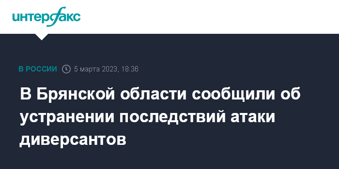 Как сообщалось, 2 марта на территорию Климовского района проникли украинские диверсанты. В результате их атаки два человека погибли, 10-летний ребенок госпитализирован с ранением.