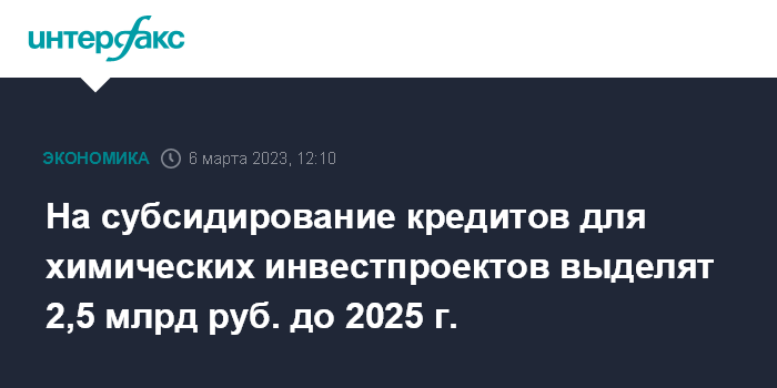 На субсидирование кредитов для химических инвестпроектов выделят 2,5 млрд руб. до 2025 г.