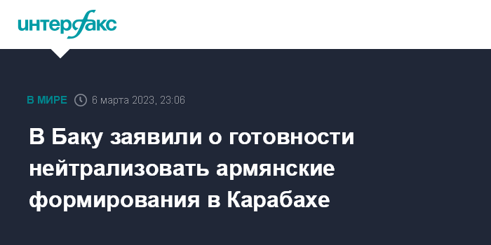 В Баку заявили о готовности нейтрализовать армянские формирования в Карабахе