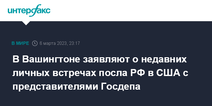 В Вашингтоне заявляют о недавних личных встречах посла РФ в США с представителями Госдепа