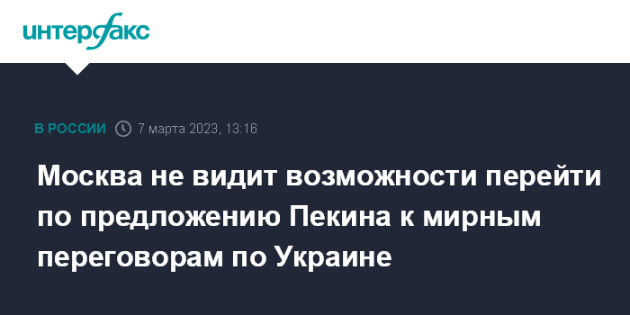 Москва не видит возможности перейти по предложению Пекина к мирным переговорам по Украине