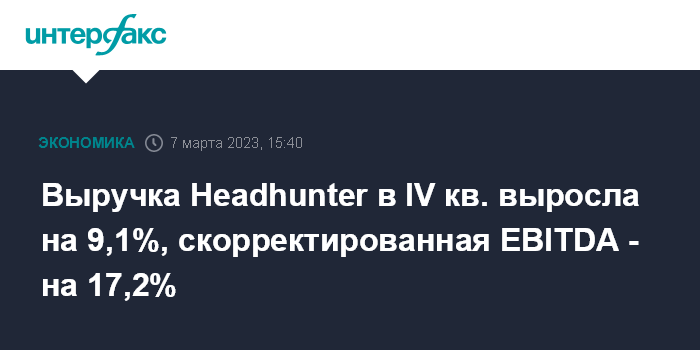 Выручка Headhunter в IV кв. выросла на 9,1%, скорректированная EBITDA - на 17,2%