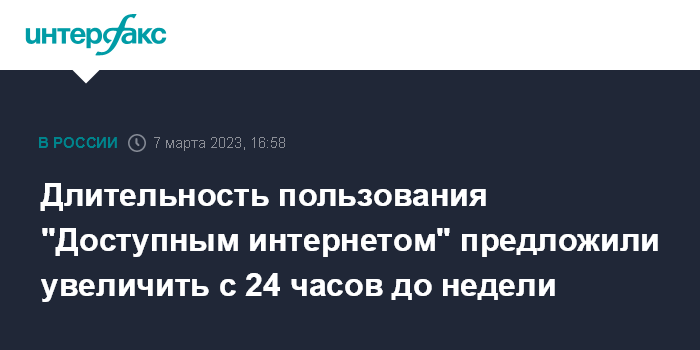 Длительность пользования "Доступным интернетом" предложили увеличить с 24 часов до недели