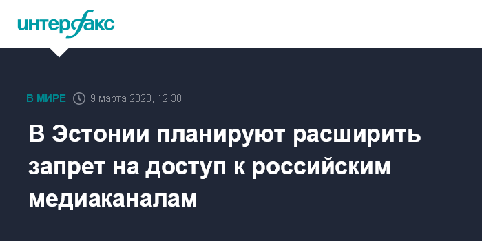 Москва. 9 марта. INTERFAX.RU - Департамент защиты прав потребителей и технического надзора Эстонии (TTJA) собирается еще больше ограничить доступ к российским медиаканалам.