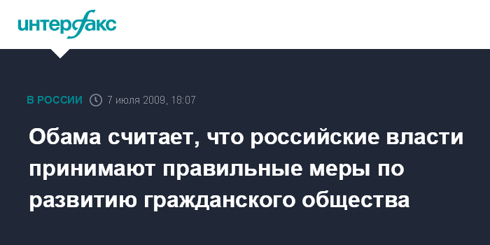 Обама считает, что российские власти принимают правильные меры по развитию гражданского общества