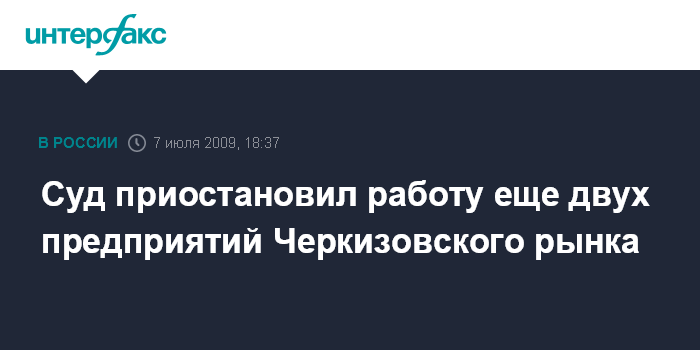 Москва. 7 июля. INTERFAX.RU - Измайловский суд Москвы приостановил на 90 суток деятельность еще двух предприятий, расположенных на территории Черкизовского рынка.