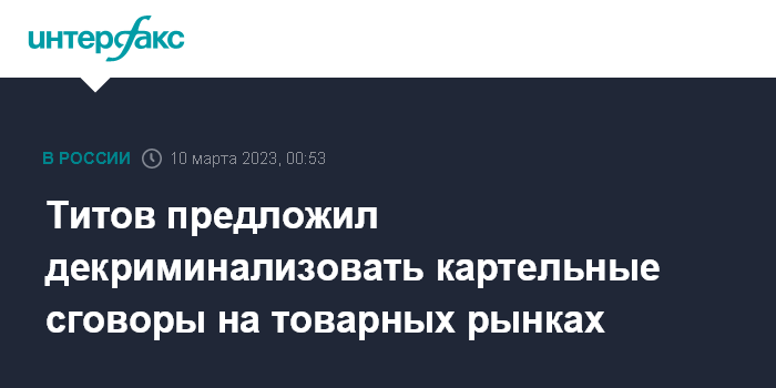 Титов предложил декриминализовать картельные сговоры на товарных рынках