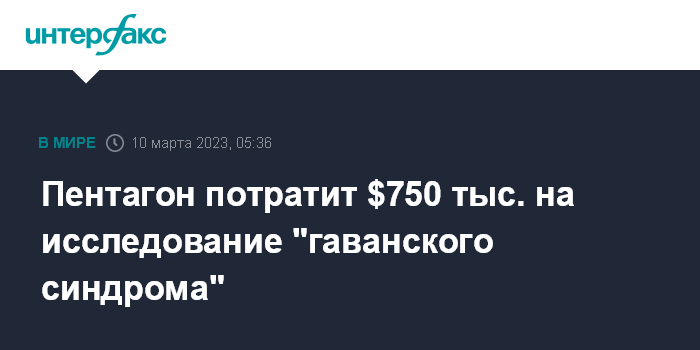 Москва. 10 марта. INTERFAX.RU - Пентагон профинансирует эксперименты для выяснения причин возникновения "гаванского синдрома", пишет газета Politico.