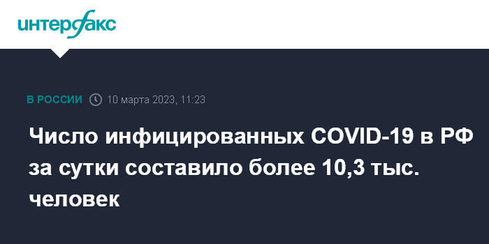 Москва. 10 марта. INTERFAX.RU - Суточный прирост новых заболевших коронавирусом в России составил более 10,3 тыс. случаев, скончались 44 пациента с COVID-19, следует из данных оперативного штаба, обнародованных в пятницу.