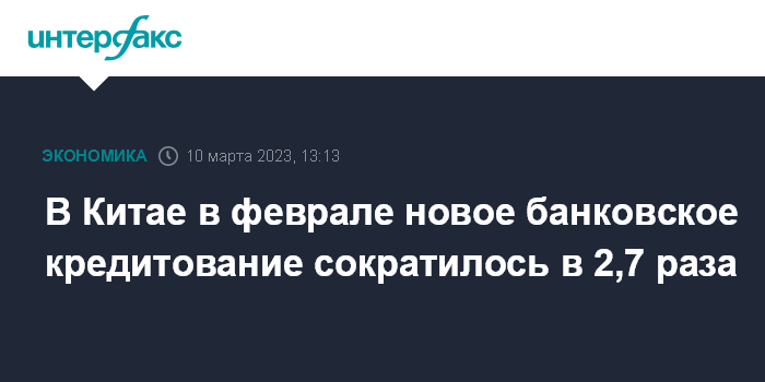 В Китае в феврале новое банковское кредитование сократилось в 2,7 раза