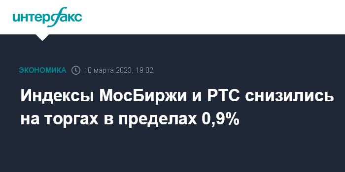Индексы МосБиржи и РТС снизились на торгах в пределах 0,9%