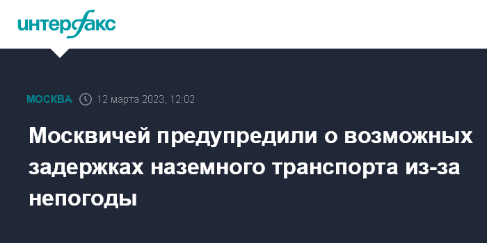 Москва. 12 марта. INTERFAX.RU - В связи непогодой в столице наземный транспорт может локально отставать от графика, сообщает в воскресенье департамент транспорта Москвы.