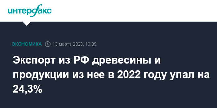 Экспорт из РФ древесины и продукции из нее в 2022 году упал на 24,3%