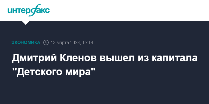 Кленов владел 10% капитала ритейлера. В сообщении компании не указывается, кто купил его долю, однако отмечается, что покупатель не связан с каким-либо другим крупным акционером "Детского мира".