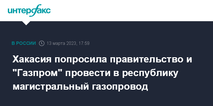 Москва. 13 марта. INTERFAX.RU - Правительство Хакасии просит федеральное правительство и "Газпром" закрепить в документах стратегического планирования газификацию республики путем строительства в регионе магистрального газопровода в 2025-2030 годах.