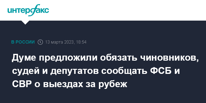 Думе предложили обязать чиновников, судей и депутатов сообщать ФСБ и СВР о выездах за рубеж