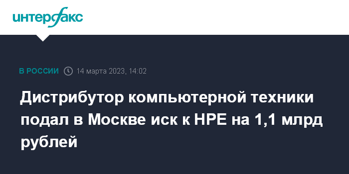 Москва. 14 марта. INTERFAX.RU - Дистрибутор компьютерной техники, электроники и ПО "Марвел-Дистрибуция" обратился в Арбитражный суд Москвы с иском к ООО "Хьюлетт Паккард Энтерпрайз" (российская структура Hewlett Packard Enterprise), следует из данных картотеки арбитражных дел.