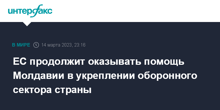 "Мы поддерживаем модернизацию оборонного сектора Молдавии через помощь Европейского фонда мира в 47 млн евро (в 2022 году)", - продолжил член ЕК.