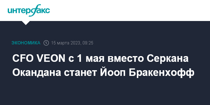 CFO VEON с 1 мая вместо Серкана Окандана станет Йооп Бракенхофф