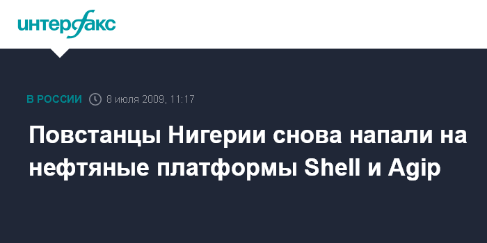 Повстанцы Нигерии снова напали на нефтяные платформы Shell и Agip
