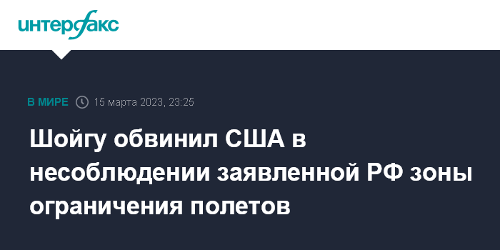 "Сергей Шойгу указал, что причиной инцидента стали действия США по несоблюдению заявленной Российской Федерацией зоны ограничения полетов, установленной в связи с проведением специальной военной операции, а также усиление разведывательной деятельности против интересов Российской Федерации", - отметили в военном ведомстве.
