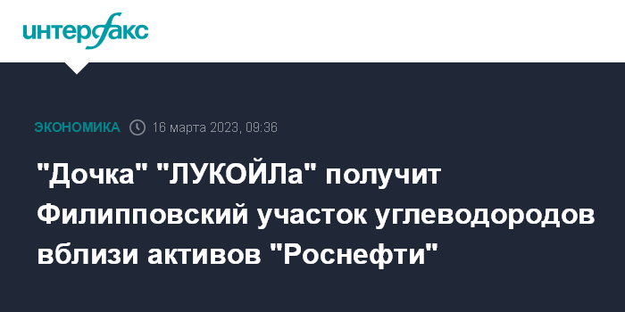 "Дочка" "ЛУКОЙЛа" получит Филипповский участок углеводородов вблизи активов "Роснефти"
