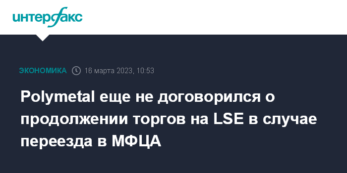 Москва. 16 марта. INTERFAX.RU - Polymetal пока не смог договориться с провайдерами депозитарных услуг, чтобы в случае переезда в Международный финансовый центр "Астана" (МФЦА) выпустить депозитарные инструменты и продолжить торги ими на Лондонской фондовой бирже, сообщила компания.
