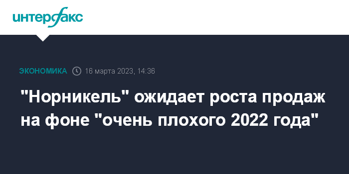 "Норникель" ожидает роста продаж на фоне "очень плохого 2022 года"