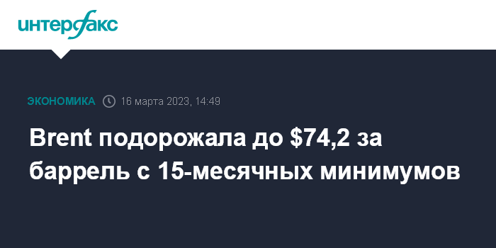 Brent подорожала до $74,2 за баррель с 15-месячных минимумов