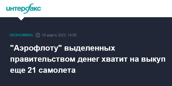"Аэрофлоту" выделенных правительством денег хватит на выкуп еще 21 самолета