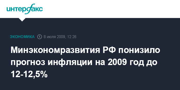 Минэкономразвития РФ понизило прогноз инфляции на 2009 год до 12-12,5%