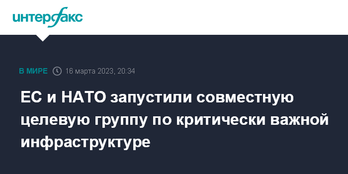 Москва. 16 марта. INTERFAX.RU - Европейская комиссия (ЕК) объявила в четверг о создании рабочей целевой группы ЕС-НАТО по устойчивости критически важной инфраструктуры.