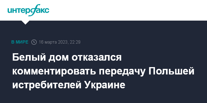 Москва. 16 марта. INTERFAX.RU - Администрация президента США воздержалась от оценок решения польских властей передать Украине истребители, назвав этот шаг суверенным выбором Польши.