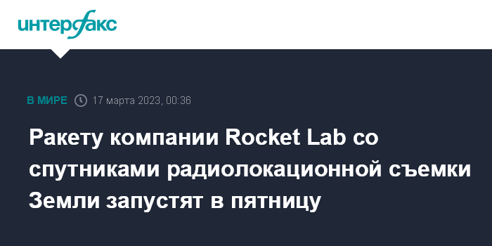 Ракету компании Rocket Lab со спутниками радиолокационной съемки Земли запустят в пятницу