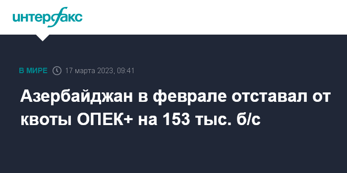 Азербайджан в феврале отставал от квоты ОПЕК+ на 153 тыс. б/с