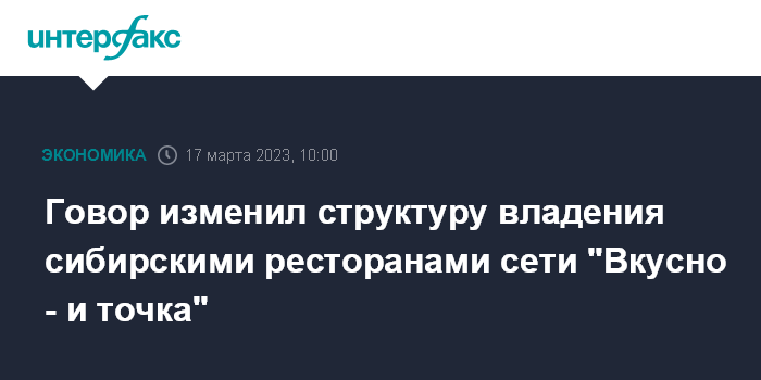 Говор изменил структуру владения сибирскими ресторанами сети "Вкусно - и точка"
