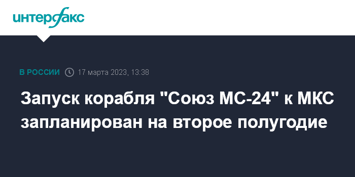 11 марта Крикалев сообщил "Интерфаксу", что запуск "Союза МС-24" к МКС, который намечен на осень 2023 года, может состояться ранее запланированного срока.