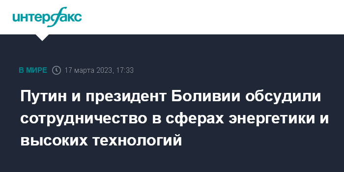 Путин и президент Боливии обсудили сотрудничество в сферах энергетики и высоких технологий