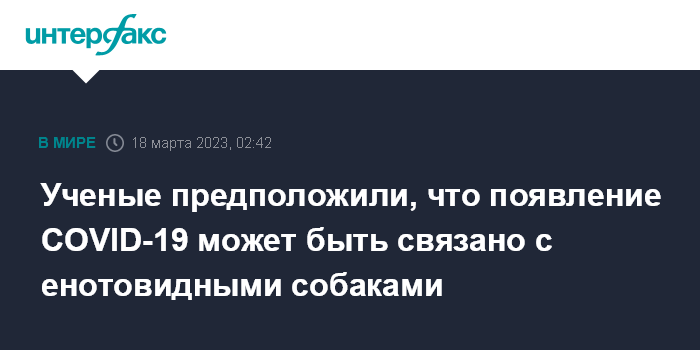 Москва. 18 марта. INTERFAX.RU - Генетический материал, собранный на китайском рынке, недалеко от которого были выявлены первые случаи заражения коронавирусом COVID-19, свидетельствует о том, что с вирусом смешалось ДНК енотовидной собаки, сообщает Associated Press со ссылкой на выводы группы ученых.
