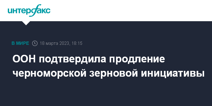 Москва. 18 марта. INTERFAX.RU - В ООН подтвердили продление черноморской зерновой инициативы.