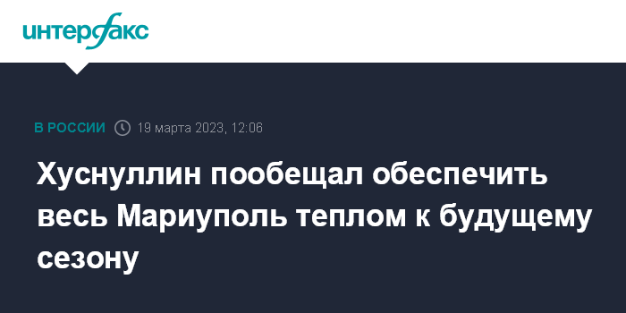 Москва. 19 марта. INTERFAX.RU - К будущему отопительному сезону 2023 года все объекты в Мариуполе будут полноценно подключены, заявил вице-премьер Марат Хуснуллин.