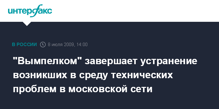 Москва. 8 июля. INTERFAX.RU - ОАО "Вымпелком" (торговая марка "Билайн") завершает устранение возникших в среду в московской сети технических проблем, из-за которых абоненты испытывали проблемы со связью.