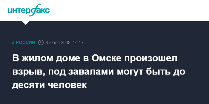 Москва. 8 июля. INTERFAX.RU - Под завалами, образовавшимися в результате взрыва в жилом доме в Омске, могут находиться до 10 человек, сообщили "Интерфаксу" в Сибирском региональном центре МЧС РФ.